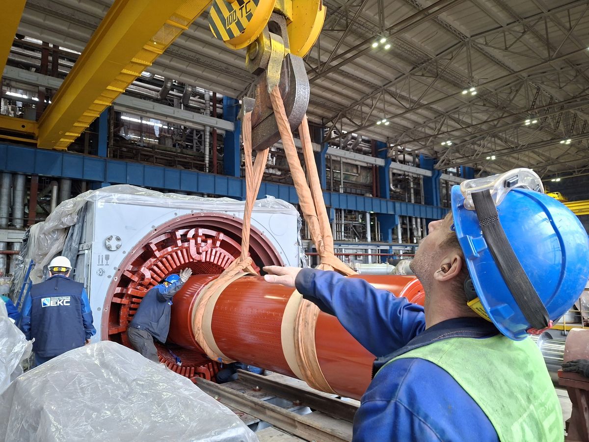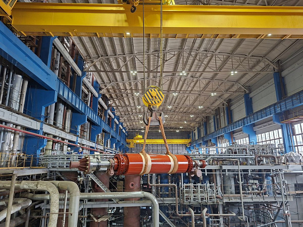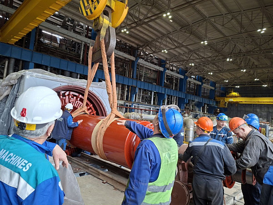 «Монтаж проходил в действующем цехе, где любое движение оборудования требует ювелирной точности. Ротор заводили под углом — это единственная возможность вписать крупногабаритную деталь в стесненные условия работающей электростанции. После снятия строп закатку выполняли с помощью системы рычагов и талей, контролируя каждый миллиметр, — прокомментировал руководитель группы КОММод Киришской ГРЭС Алексей Петров. — От монтажников и крановщиков потребовалась высочайшая концентрация, аккуратность и спокойствие в напряженной обстановке. Персонал с задачей успешно справился».
